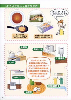 14ページではガスがサポートする豊かな生活を判り易くイラストにしました。