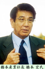 橋本産業の社長、橋本宏氏は開口一番目下のデフレ経済下の会社経営に徹していると述べた。岳父である先代社長・橋本内匠氏は昨年8月12日に亡くなって早くも一年が経過した。先代は昭和2年に学校を出て実業界に入ったのであるが、それは金融大恐慌が勃発して銀行の倒産が相次ぎ暗澹たる時期だった。身をもってデフレを体験した先代はデフレ下では物よりも金だと強調した。インフレのときは貨幣より物が、土地も株も上がったが、今はその逆だ。平成3年ころからバブルは終焉を迎えた。いま銀行筋は保有有価証券の評価損が膨大な額になり銀行を危うくしている。