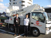 2004/11/29PBニュース12 LPG仕様 バケット車3台導入 J−COM福岡 低騒音、環境が決め手 福岡ケーブルネットワーク(福岡市)とケーブルビジョン21(福岡市)で構成される「J−COMBroadband福岡」はこのほど配線工事用の車両にLPG仕様のバケット車(高所作業車)を3台導入し、11月初旬から運転を開始した。決め手となったのは他燃料と比べた場合の騒音の少なさや環境優位性で、インフラ面の充実も導入を後押しした。ディーゼル車との走行コストの比較しだいだが、現場ではLPG車の性能を高く評価する声が多い。 | |||||||||||||||||