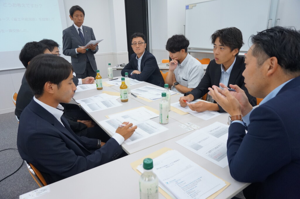 ヤマサン会青年部会(杉原慶太郎会長)は9月26日、米子市の米子コンベンションセンターで研修会と意見交換会を開いた。日本ガス石油機器工業会(JGKA)から講師を招き「今後の国の省エネ・住宅政策とLPガス事業者の対応について」研修。参加者25人によるグループ討議も行った。(写真=意見交換では前城典昭氏(奥)らJGKAも立ち合い省エネ機器普及に向けた取り組みや課題を洗い出した)