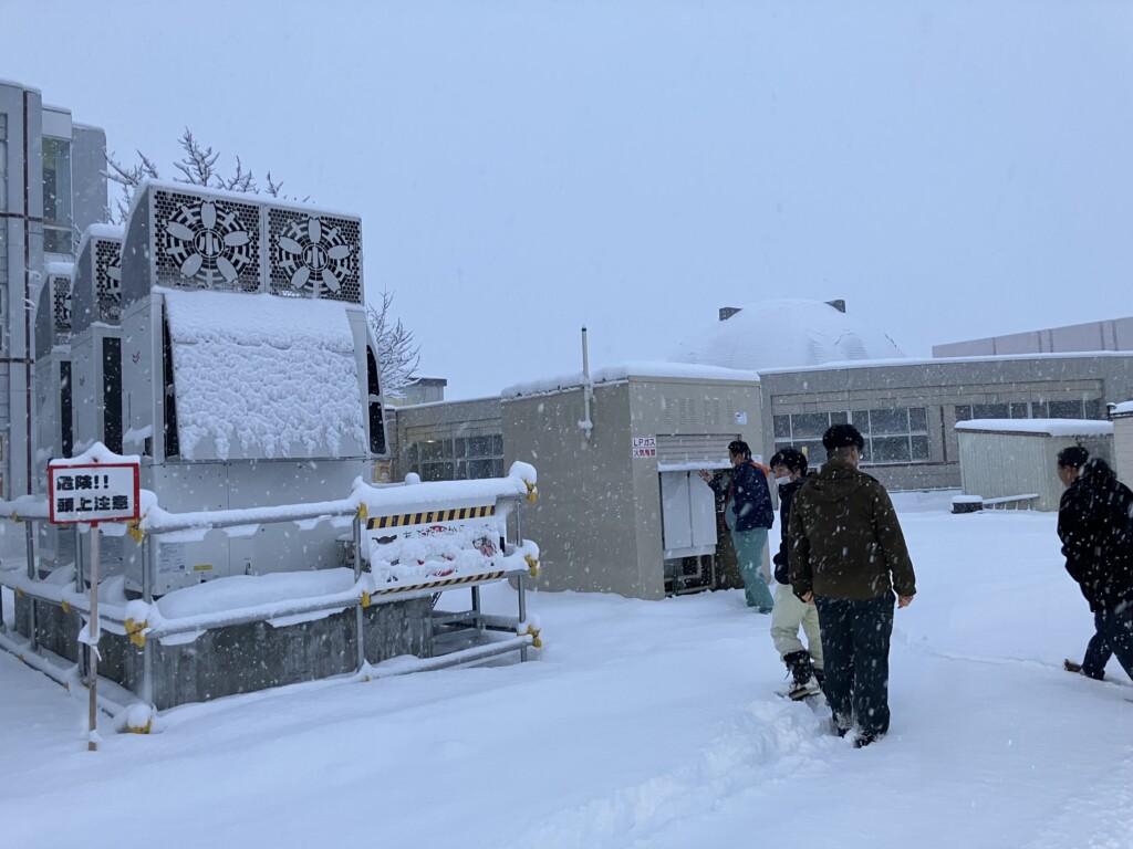 先進事例を吸収し提案時に生かすためで、稲原理事長や赤間宗嗣参事ら4人が視察した。【写真】GHPを設置した士別小の校舎を視察した