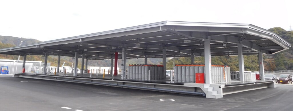 入交トラストエナジー(本社・高知市、成岡祐輔社長)は高知市布師田の高知中央産業団地内に災害時にもエネルギー供給を継続できる新本社を竣工し、2月1日に記念式典を行った。新本社は第一種貯蔵所の許可を受けLPガス容器を約2千本貯蔵できるほか、屋内外に潤滑油貯蔵施設を整備。新本社を機軸にエネルギー供給会社として地域社会に貢献する。写真㊦ LPガス容器を約2千本貯蔵できるプラットホーム