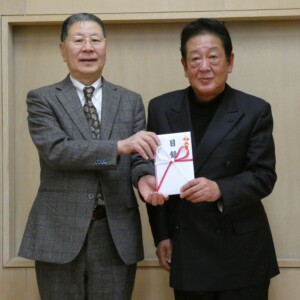 群馬県ガス事業協同組合(渡邉誠理事長)は社会貢献の一環で桐生市の福祉型障害児入所施設、桐の実会「わたらせ養護園」(野口秀樹理事長)に業務用ガス衣類乾燥機(8㌔㌘)1台を、設置台、付属品、配管工事と一式で寄贈した。2月20日に施設で寄贈式を開き、渡邉理事長が野口理事長に目録を手渡した。【写真】渡邉誠理事長(右)と野口秀樹・わたらせ養護園理事長