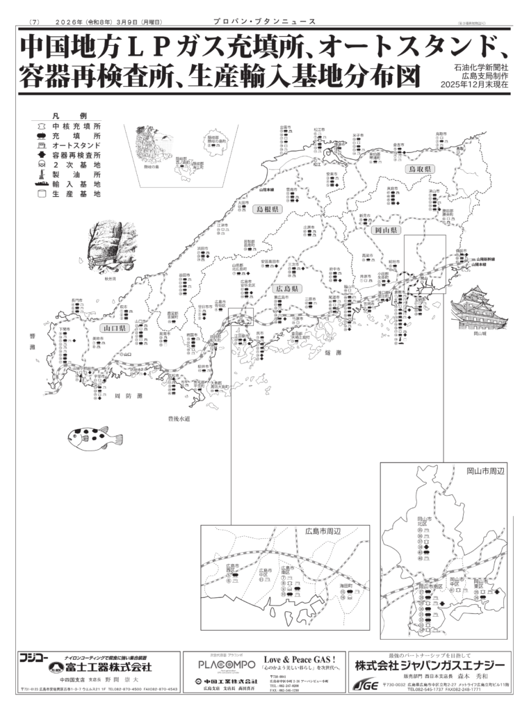<特集> 中国地方LPガス充填所、オートスタンド、容器再検査所、生産輸入基地分布図