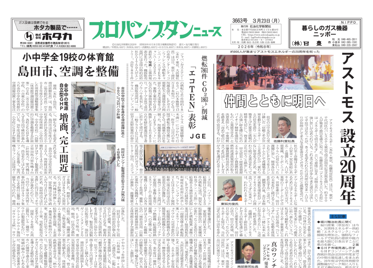 • ジャパンガスエナジー、「エコTEN」表彰 燃転7861件・CO1863トン削減
