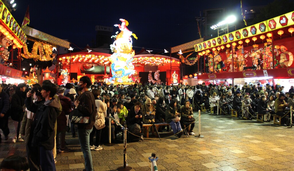 ランタンフェスは毎年中国の旧正月(春節)の時期に開催される冬の祭典で、期間中は約1万5千個の中国提灯(ランタン)と、中国の神話や史実をモチーフにした巨大なオブジェが街を彩る。市内の中央公園、湊公園には中華街の店舗や地元飲食店の屋台が立ち並び、連日多くの市民や観光客で賑う。