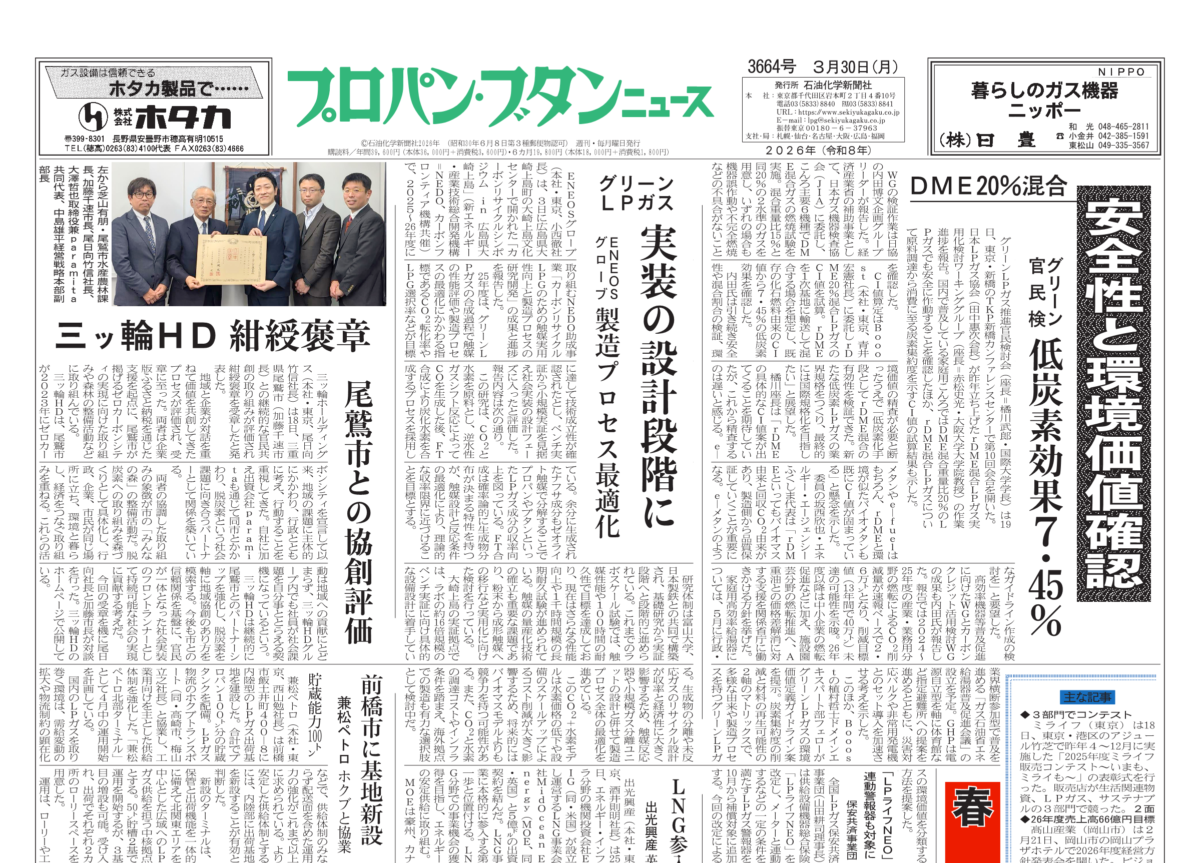 • グリーンLPガス官民検討会、DME20%混合で安全性と環境価値確認