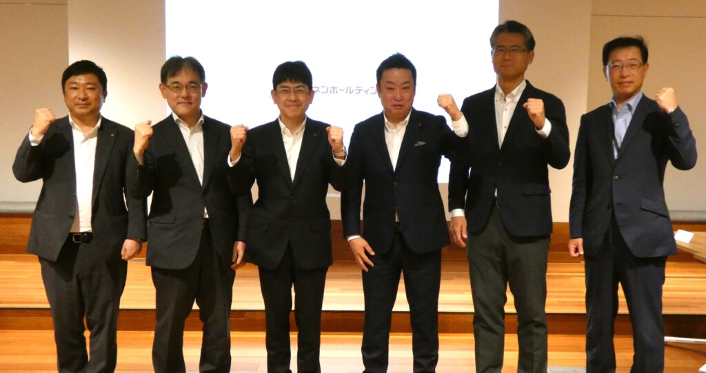 ミライフ西日本、ミライフ、ミライフ東日本、シナネンの4社が統合した新生シナネン(本社・東京、中川進弘社長)が1日、発足した。ブランド集約による一層の認知度向上を図る。「世界に誇れる地元をツクる」を新たなミッションに、リテールサービスの事業方針として①街の資産価値を上げる②街の環境価値を創る③街のコミュニティーを盛り上げる―3大戦略に掲げる。地域拠点を持つ強みを生かし、単一ごとのエネルギー企業からグループのさまざまなサービスを街全体に提供する企業体への進化を目指す。【写真】左からシナネンの山之口雄二取締役常務執行役員、飯塚義幸取締役常務執行役員、中川進弘社長執行役員、シナネンホールディングスの中込太郎社長執行役員、寺田達彦常務執行役員、合田健執行役員社長室長