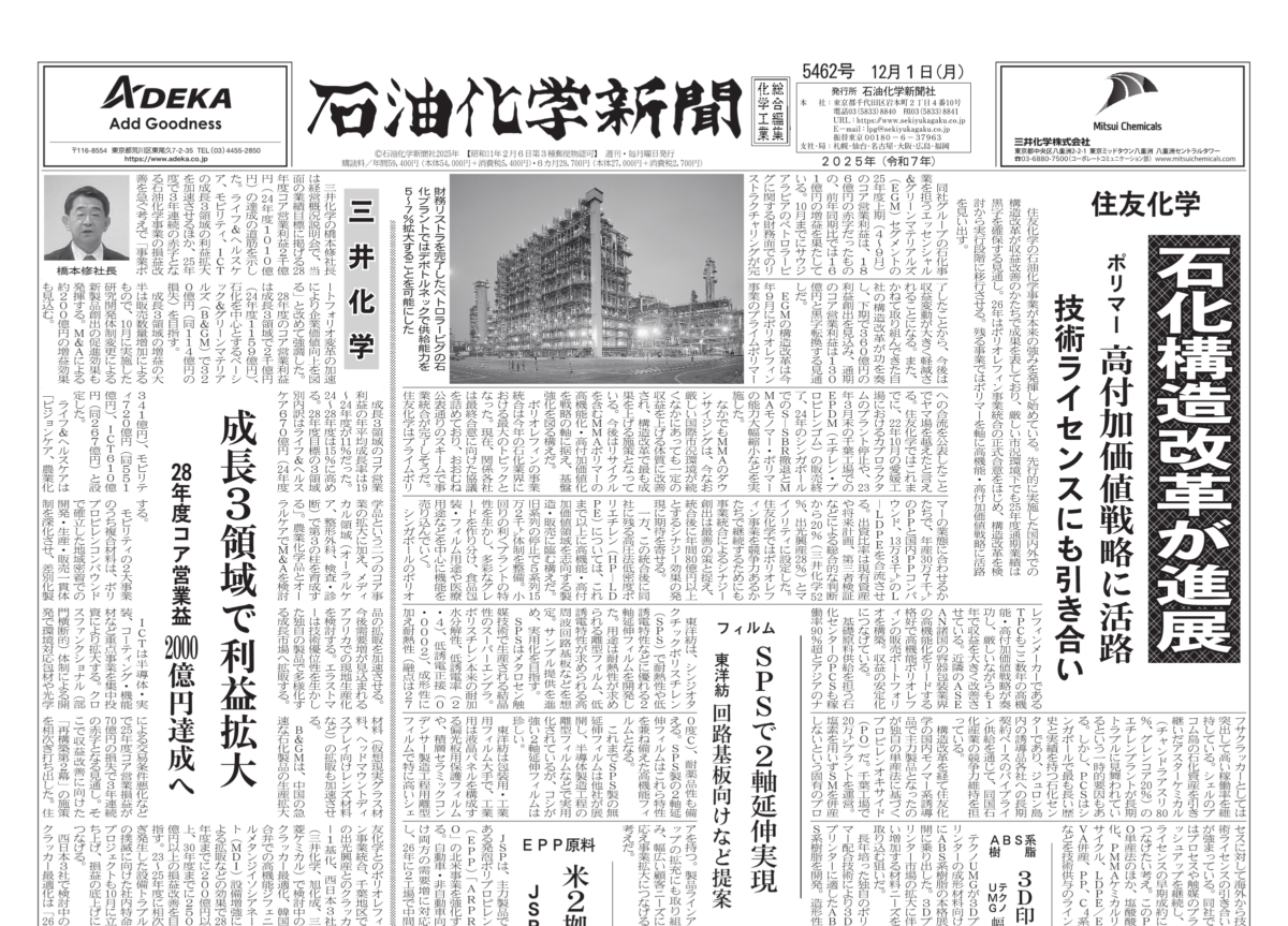住友化学の石油化学事業が本来の強みを発揮し始めている。先行的に実施した国内外での構造改革が収益改善のかたちで成果を表しており、厳しい市況環境下でも25年度通期業績は黒字を確保する見通し。26年はポリオレフィン事業統合の正式合意をはじめ、構造改革を検討から実行段階に移行させる。残る事業ではポリマーを軸に高機能・高付加価値戦略に活路を見い出す。