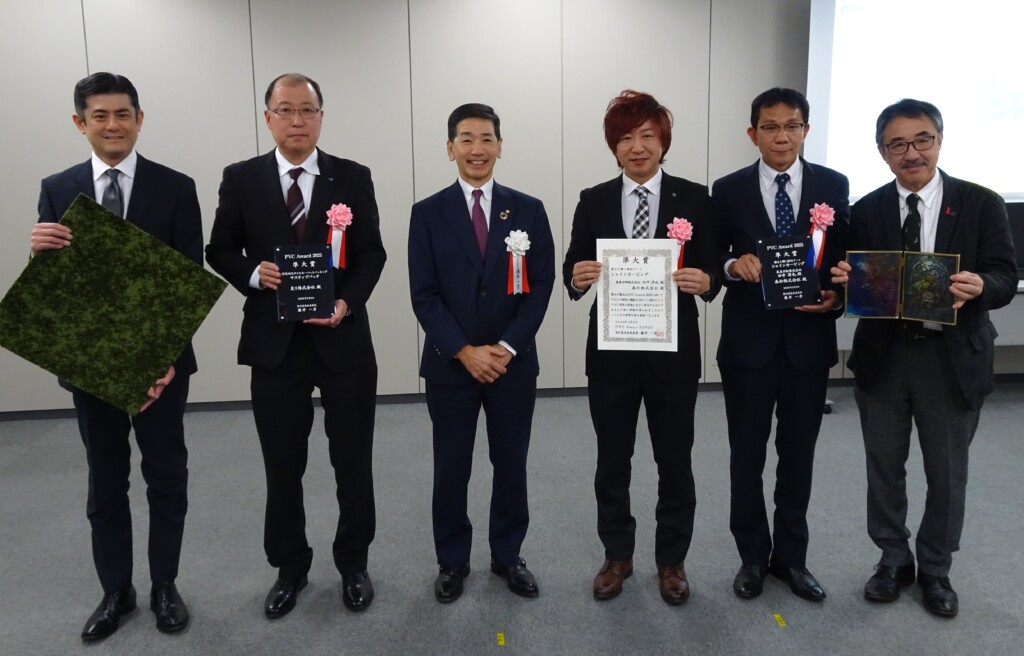 塩ビ工業・環境協会(VEC)などが主催する塩化ビニル樹脂(PVC)を用いた製品コンテスト「PVCアワード2025」の表彰式が東京・中央区の住友不動産六甲ビルで行われ、準大賞の東リ「環境対応タイルカーペットバッキング『サスティブバック』」、義春刃物「彫ると輝く彫刻アート『シャインカービング』(KIRIKOバージョン)」をはじめ優秀賞3 点、特別賞3点、デザイン賞2点、入賞5点の全15製品が表彰された。今回、大賞は該当がなかった。【写真】VECの藤井一彦会長(左から3人目)と東リ(左の2人)、義春刃物の田中淳也氏(右から3人目)ら受賞者